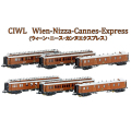 CIWL(国際寝台車会社ワゴン・リ社)の豪華列車として知られる、「ウィーン・ニース・カンヌ エクスプレス」。 ワゴン・リ社はヨーロッパで1870年代から寝台列車の運行を開始し、1880年代からはオリエント急行の元祖となる豪華寝台列車の運行を開始しました。 オリエント急行の成功により、ヨーロッパにおける急行列車網を拡げ、ヨーロッパ各都市から、南フランスのリゾート地である「コート・ダジュール」を結ぶ列車も数多く運行されました。 「ウィーン・ニース・カンヌ エクスプレス」も当時のワゴン・リ社全ての豪華寝台列車と同様、寝台車、食堂車、荷物車からなる列車で、ヨーロッパの上流階級層から多く利用される豪華列車でした。 |