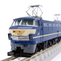 EF66形は最高速度100㎞/hの1000t級高速貨物列車を単機でけん引可能な機関車として、1968年から量産が開始されました。 1985年のダイヤ改正からは、東海道・山陽本線でブルートレインのけん引にも活躍をしました。 15号機までの前期型は運転室窓上にひさしが無く、後年取り付け改造が一部の車両で行われました。 1987年の国鉄分割民営化の際にJR西日本とJR貨物へ移管されました。 |