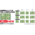 Nゲージで再現された12ftタイプのコンテナのモデルです。モデルは塗装済みの完成品。全長約25mmで再現されたコンテナはパネルのディテールはもちろん、後部の扉のレバーなど、細部のディテールも詳細に表現しています。 このセットでは日本貨物鉄道、JR貨物が運用している19D型/19G型タイプを再現。中でも、2011年に製造された90000番台のタイプをモデル化。セットには19Dタイプが1個、19Gタイプが2個の3個セット。モデルでもコンテナ全体に塗装されたコンテナグリーン、黄緑6号のカラーはもちろん、ロゴやエコレールマークなども詳細に表現。側面両扉タイプの19Dタイプと片側側面扉で一方の妻面がコルゲート、もう一方の妻面が扉の19Gタイプはそれぞれ、表面のディテールの違いを塗装でリアルに表現しています。Nゲージの貨車に搭載してレイアウトの中でも目を引く車両に仕上げていただけます。 |